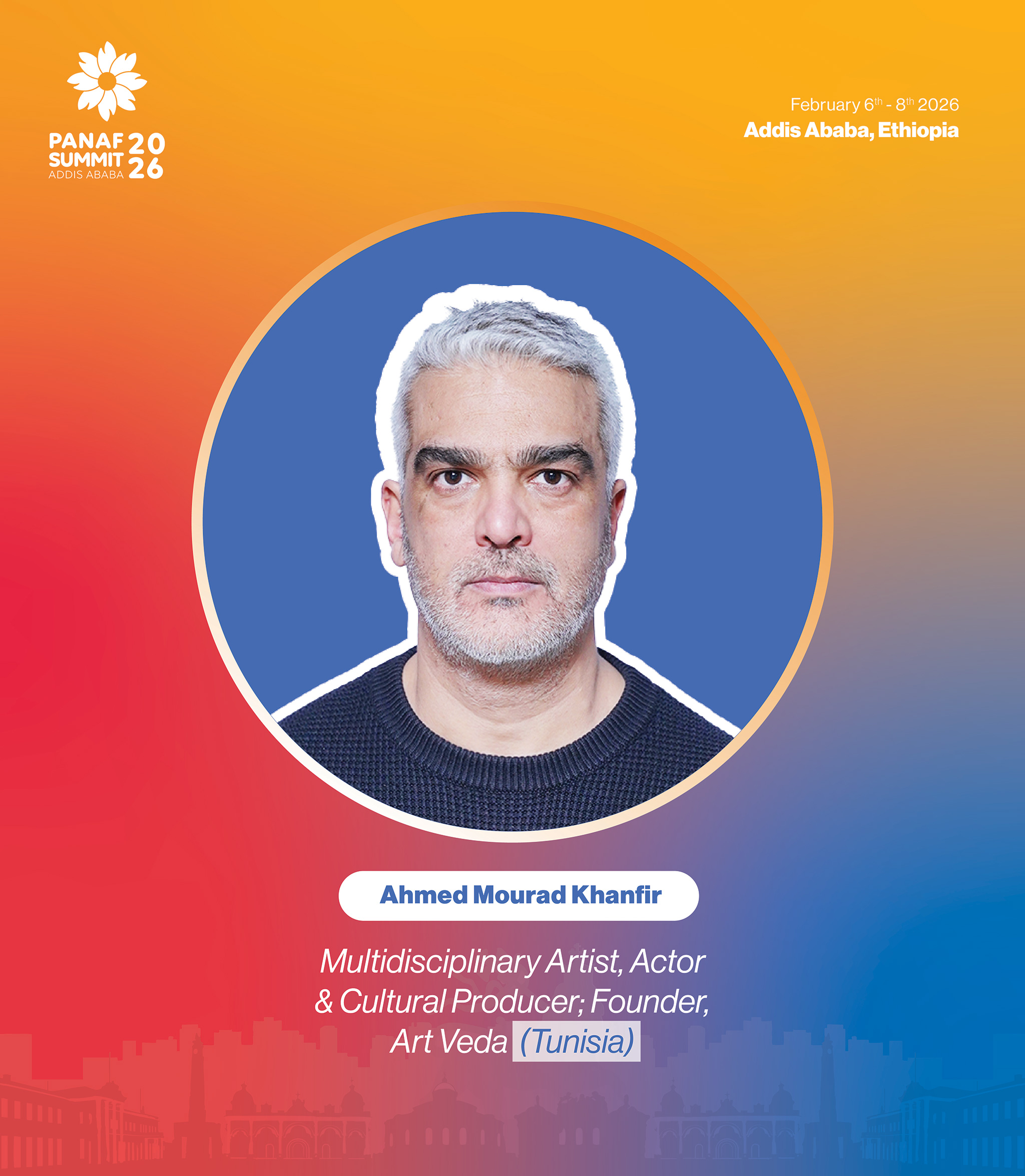 Ahmed Mourad Khanfir is a multidisciplinary artist, actor, and cultural producer working across performance, film, and cultural production. He is the Founder of Art Veda, a creative platform exploring artistic expression rooted in social reflection, mobility, and cross-cultural exchange.